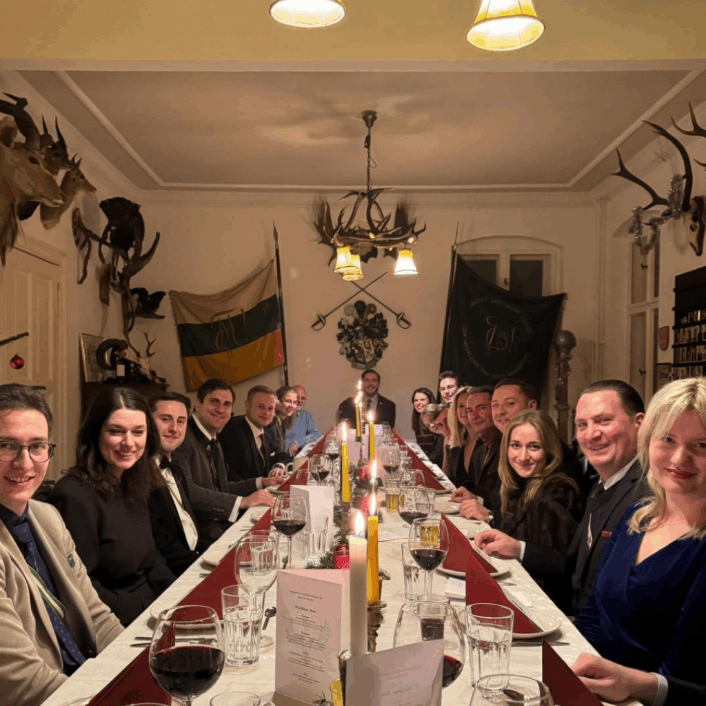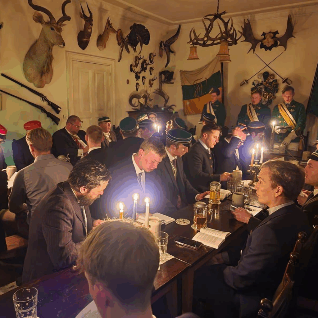 Festliches Wildessen in geselliger Runde mit Corpsbrüdern, Freunden und Gästen – gutes Wildbret, Kerzenschein und weihnachtliche Stimmung.